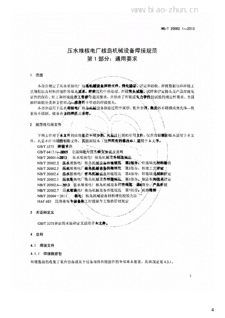 NB/T 20002.1-2013 压水堆核电厂核岛机械设备焊接规范 第1部分:通用要求