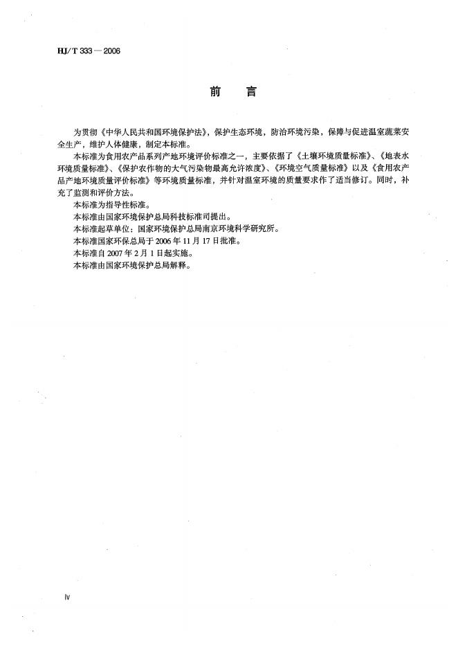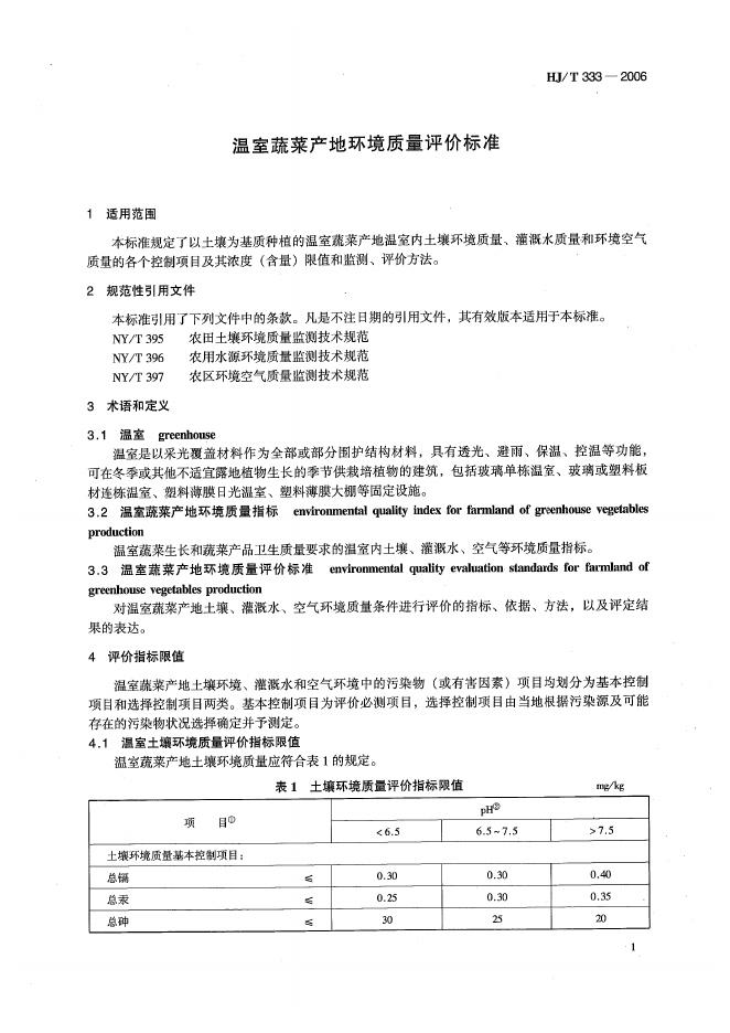 HJ 333-2006 温室蔬菜产地环境质量评价标准