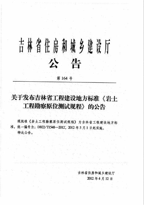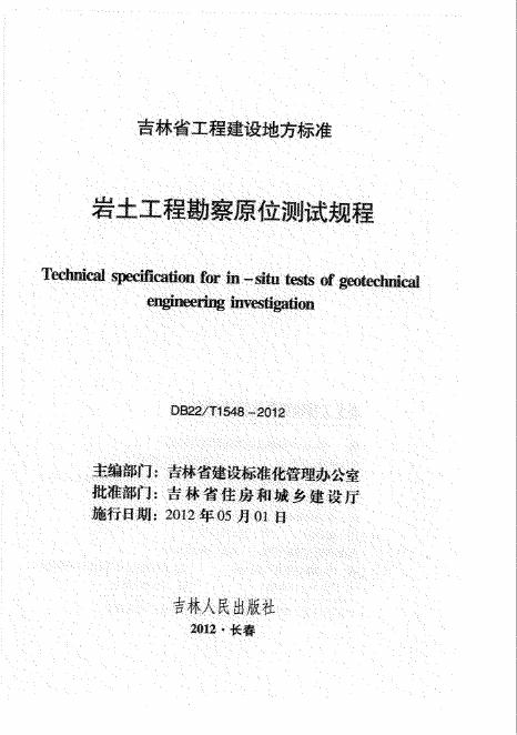 DB22/T 1548-2012 岩土工程勘察原位测试规程(已废止)