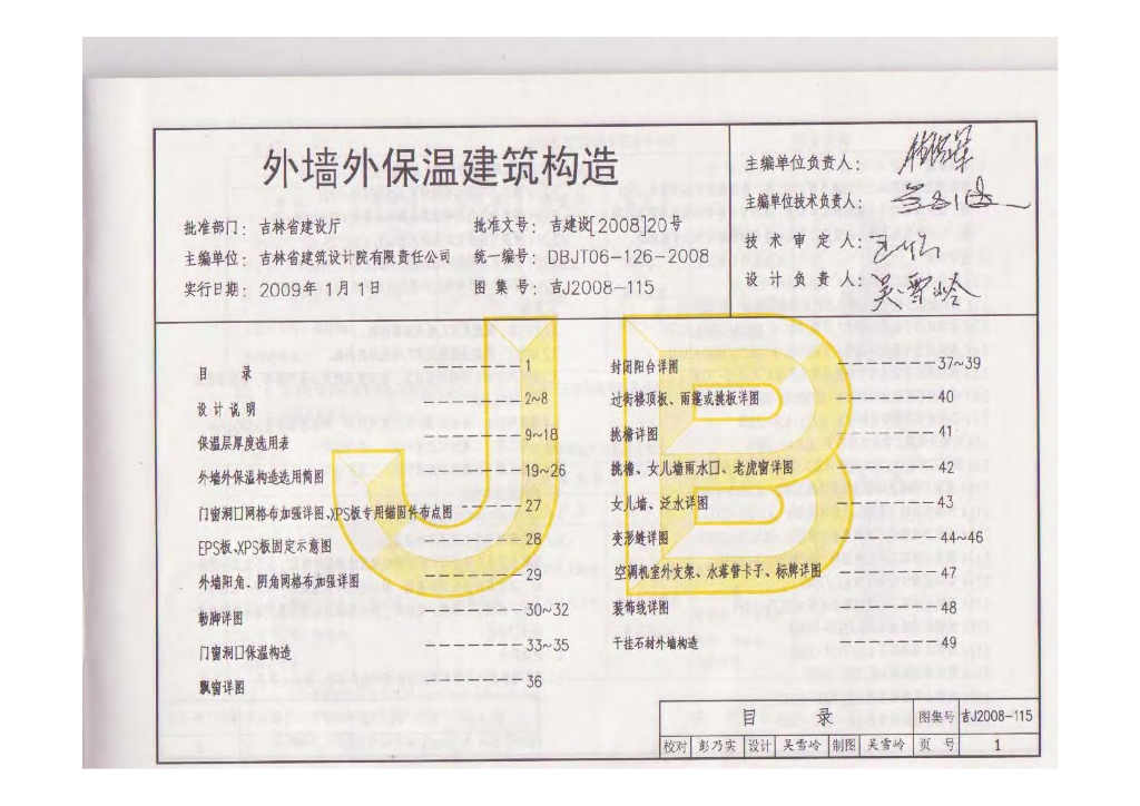 吉J2008-115 外墙外保温建筑构造图集