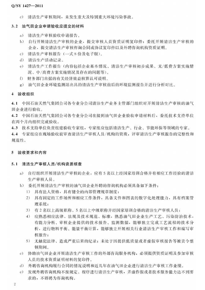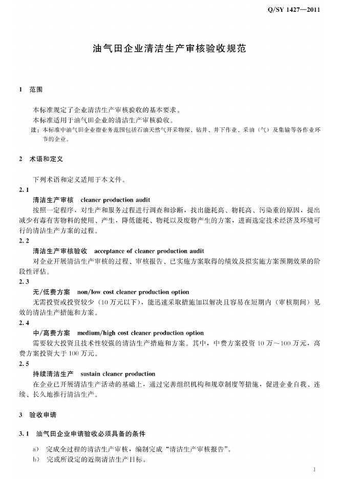 Q/SY 1427-2011 油气田企业清洁生产审核验收规范