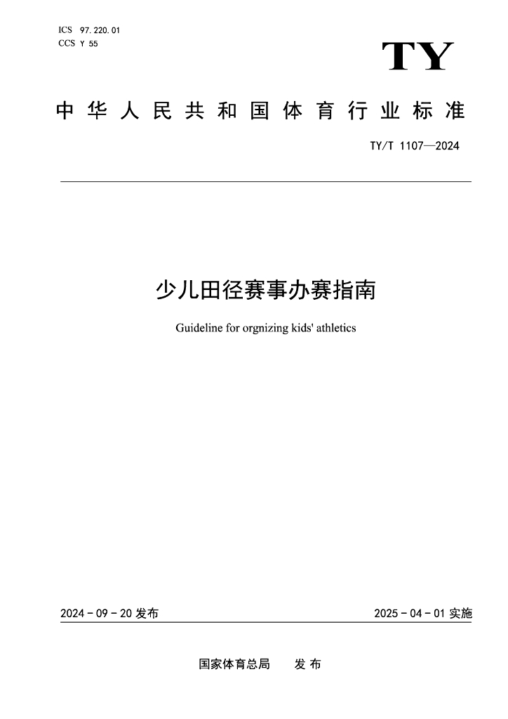 TY/T 1107-2024 少儿田径赛事办赛指南
