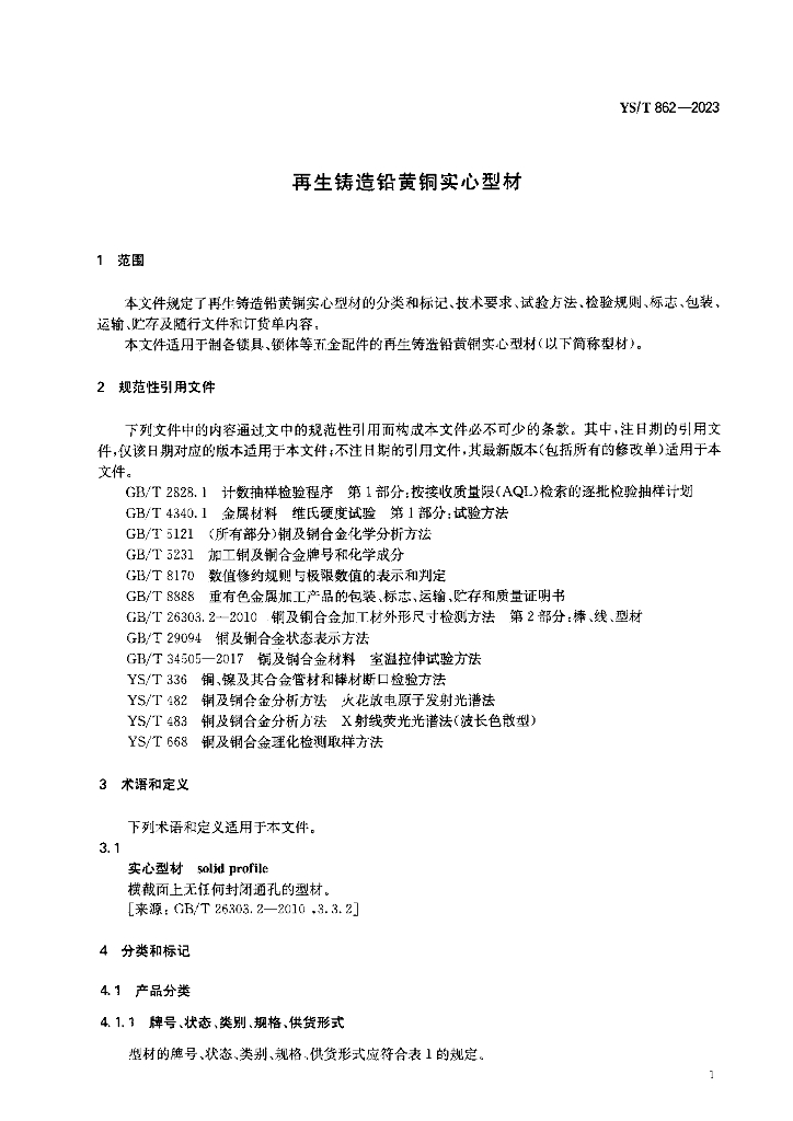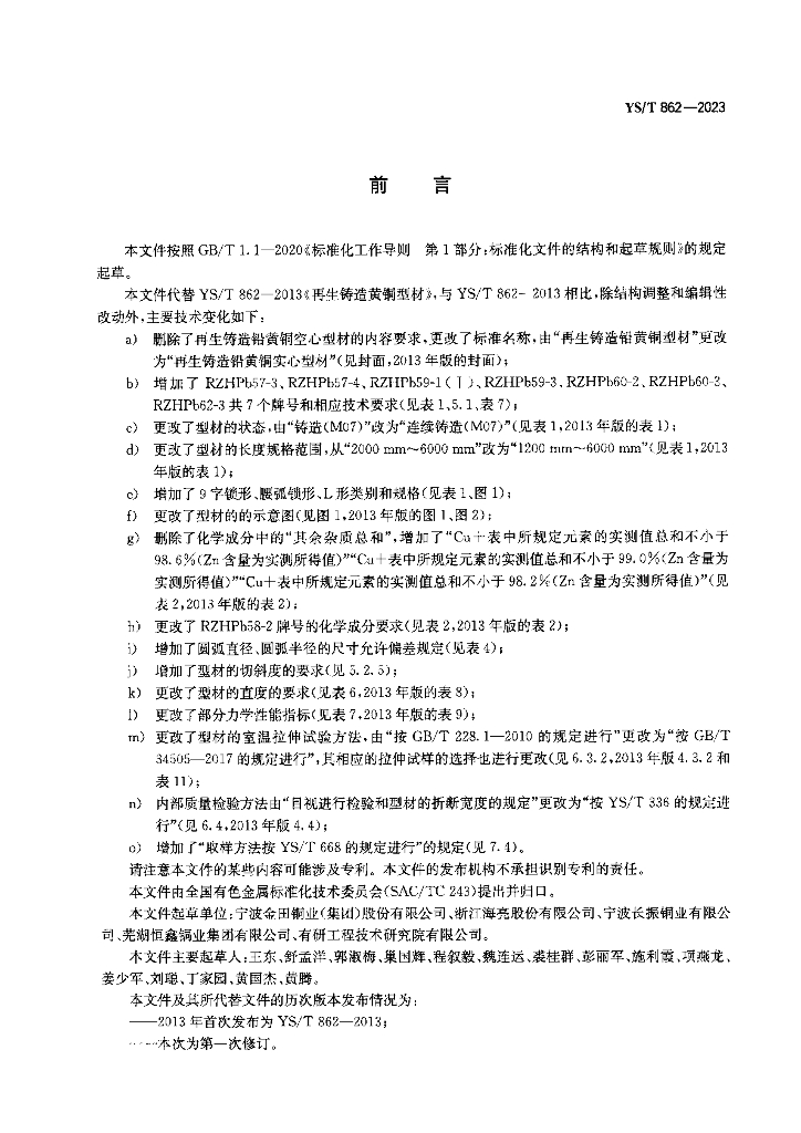 YS/T 862-2023 再生铸造铅黄铜实心型材