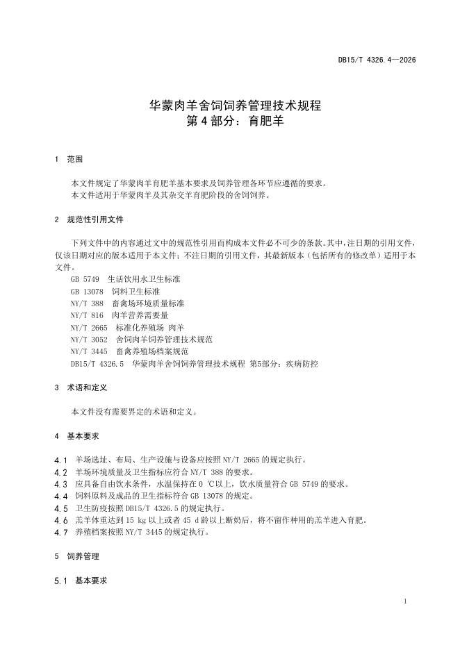 DB15/T 4326.4-2026 华蒙肉羊舍饲饲养管理技术规程 第4部分:育肥羊
