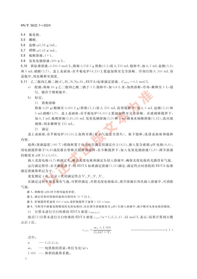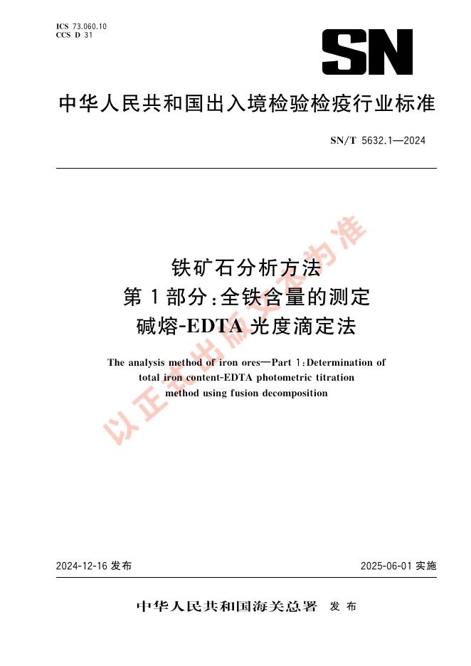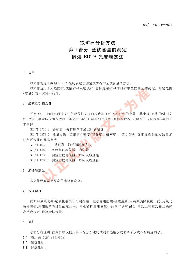 SN/T 5632.1-2024 铁矿石分析方法 第1部分:全铁含量的测定 碱熔-EDTA 光度滴定法