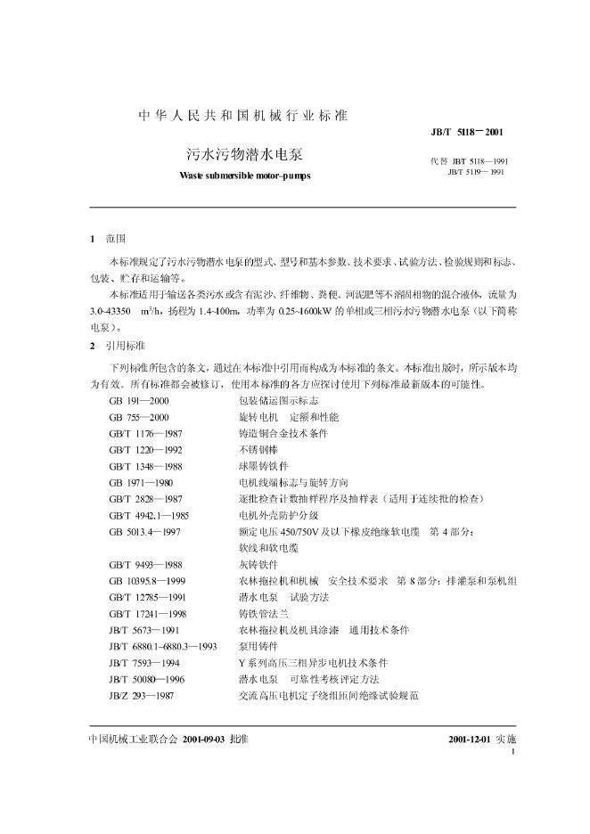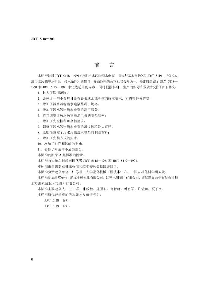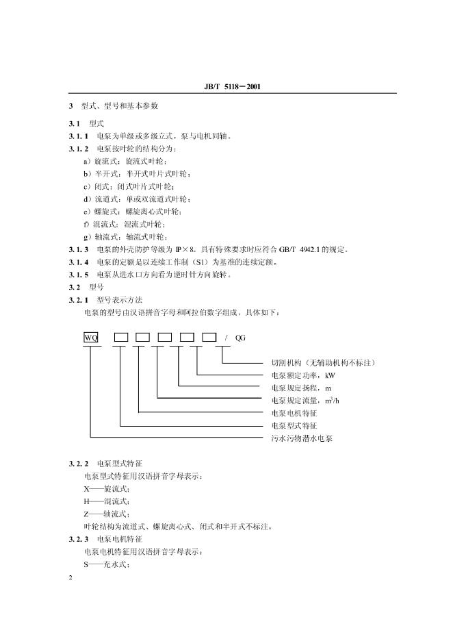 JB 5118-1991 农用污水污物潜水电泵型式与基本参数