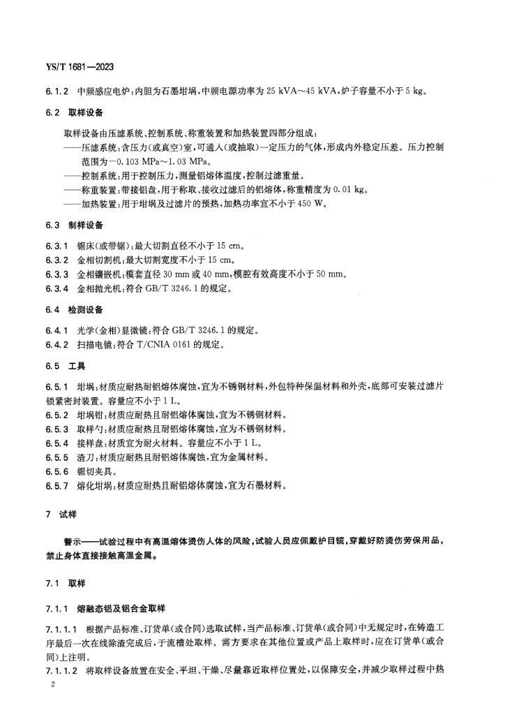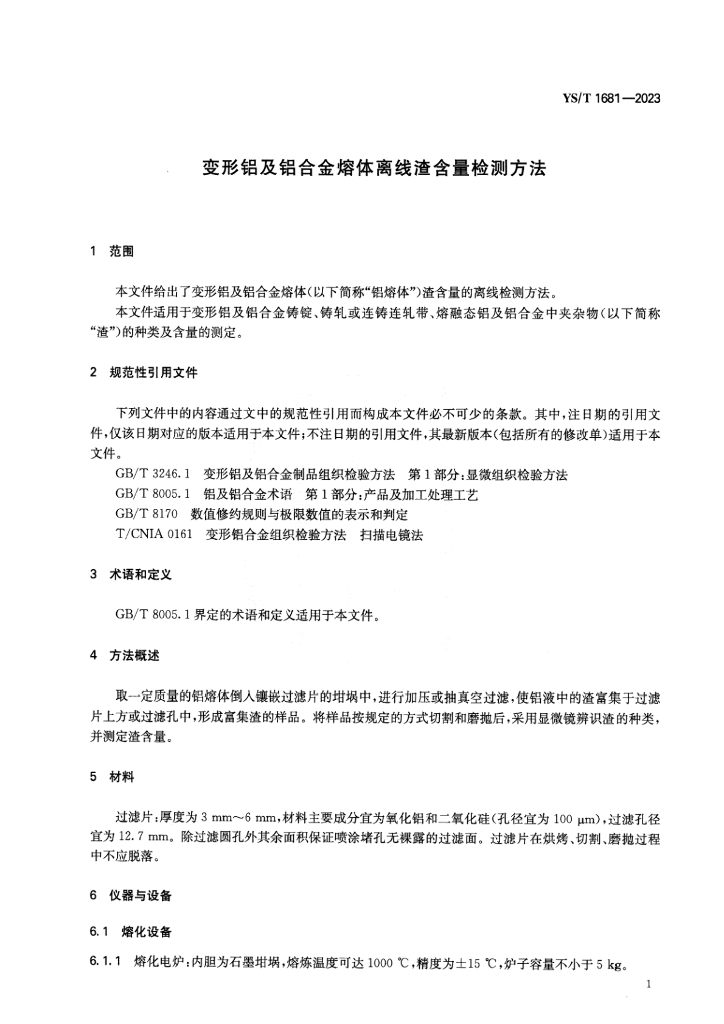 YS/T 1681-2023 变形铝及铝合金熔体离线渣含量检测方法