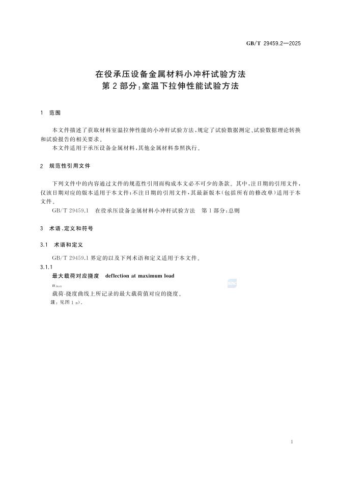 GB/T 29459.2-2025 在役承压设备金属材料小冲杆试验方法 第2部分:室温下拉伸性能试验方法