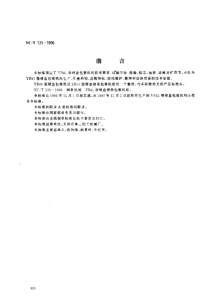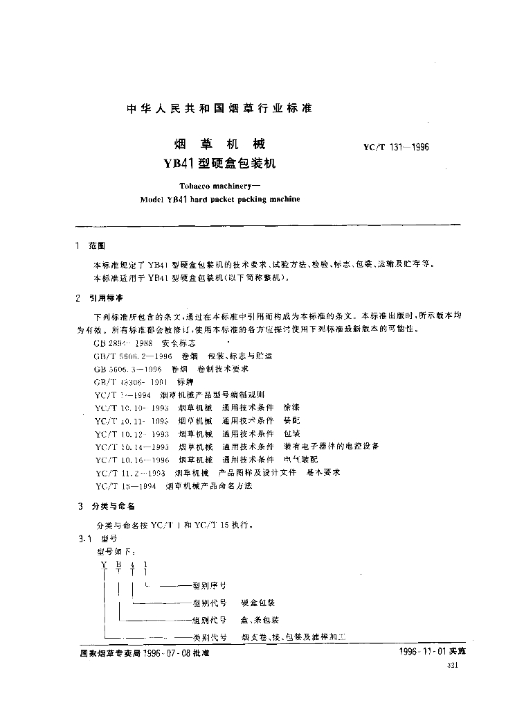 YC/T 131-1996 烟草机械 YB41型硬盒包装机