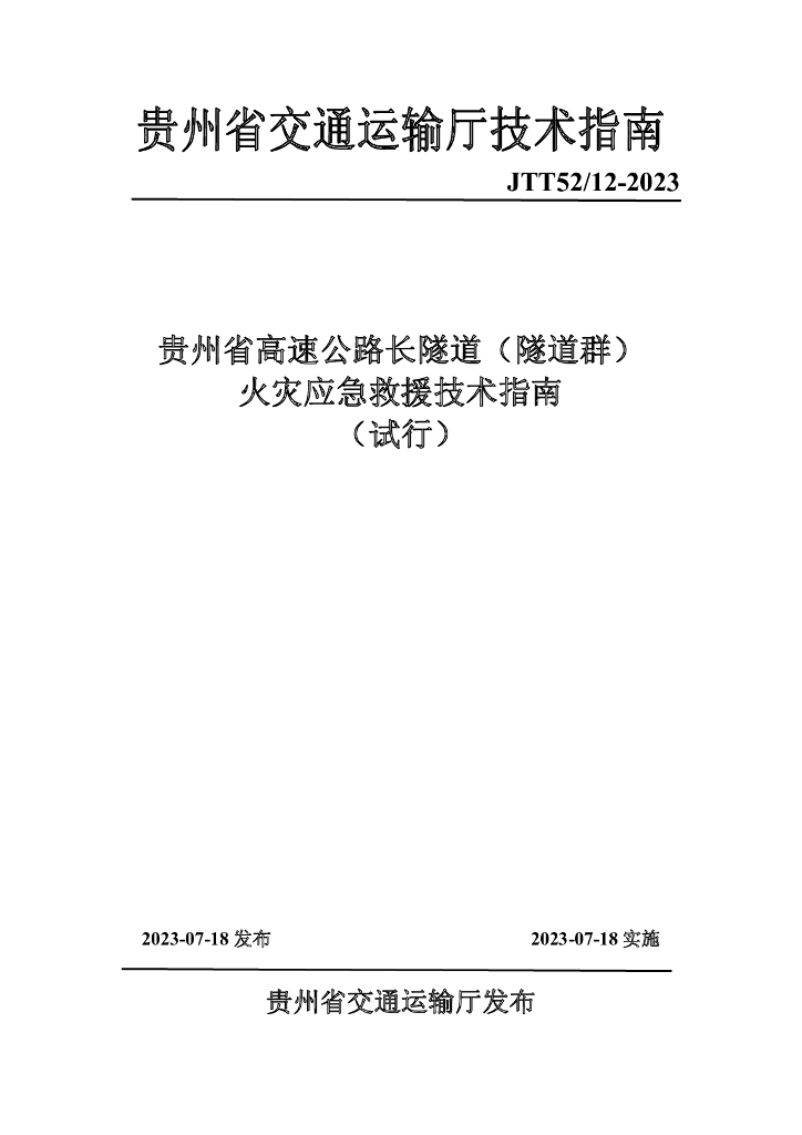 JT/T 52/12-2023 贵州省高速公路长隧道(隧道群) 火灾应急救援技术指南(试行)