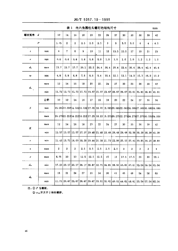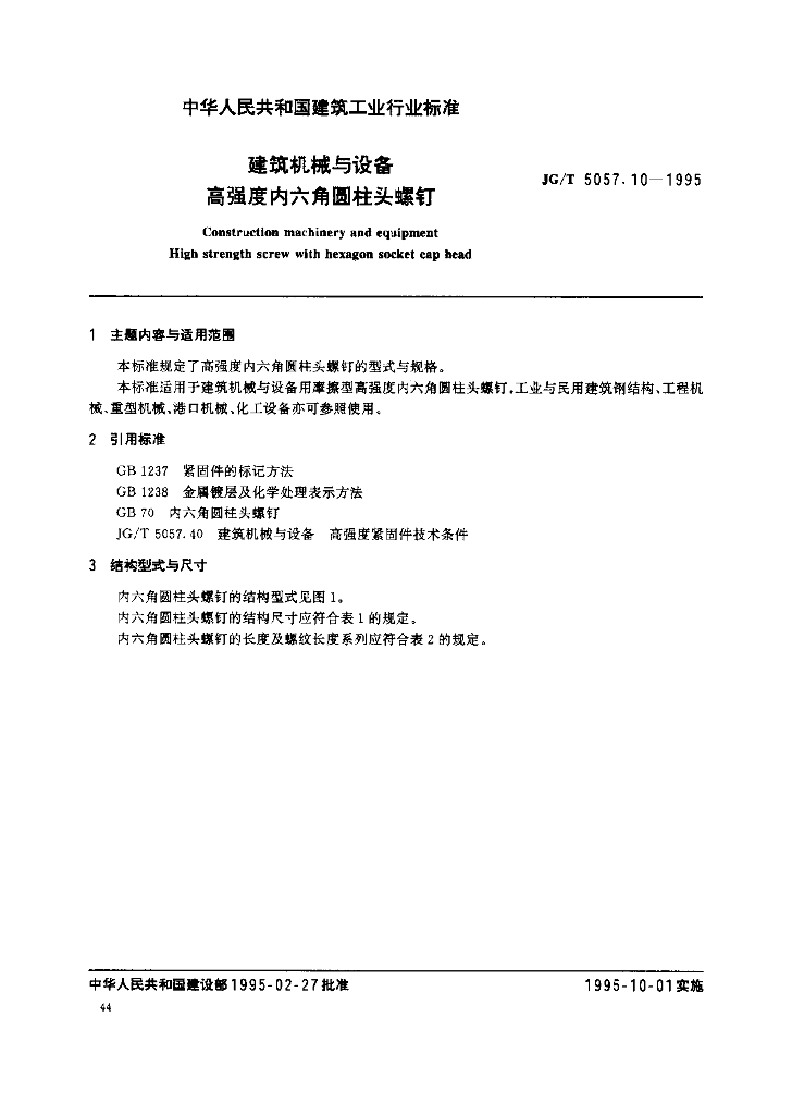 JG/T 5057.10-1995 建筑机械与设备 高强度内六角圆柱头螺钉