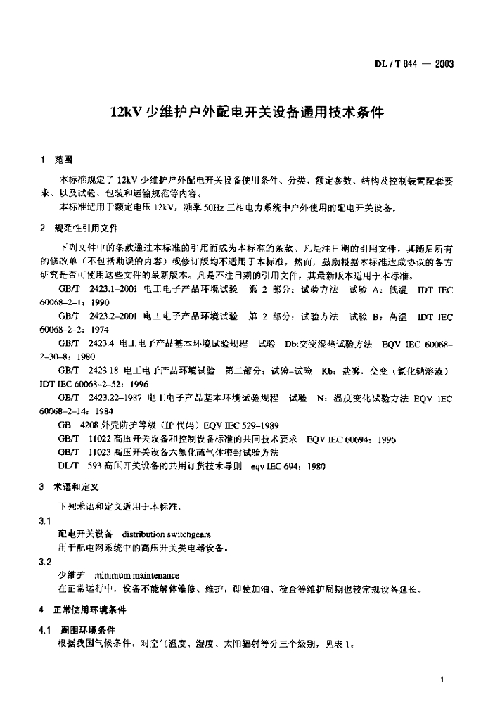 DL/T 844-2003 12kV少维护户外配电开关设备通用技术条件