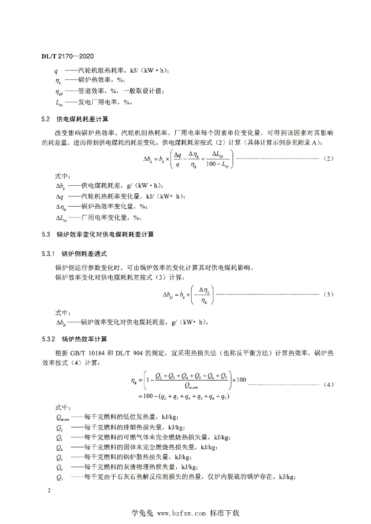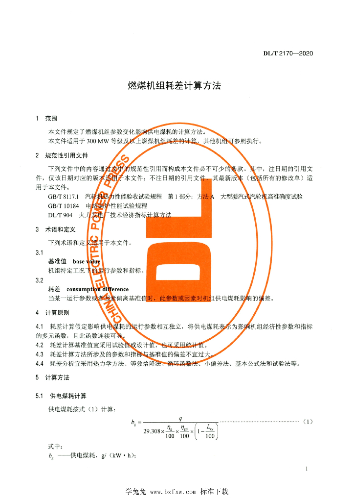 DL/T 2170-2020 燃煤机组耗差计算方法