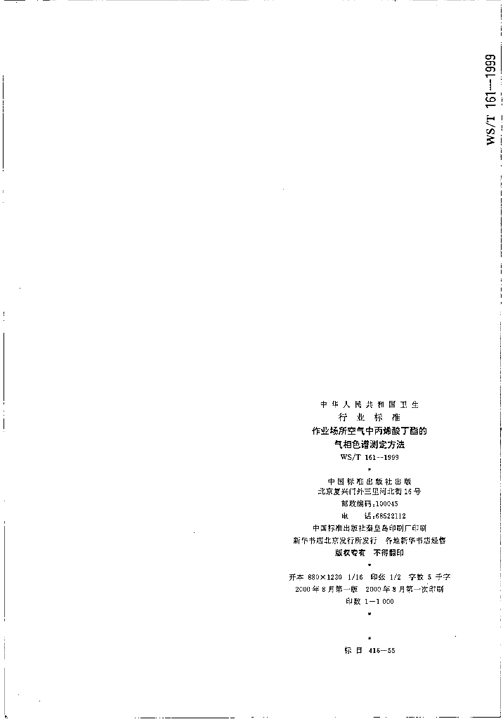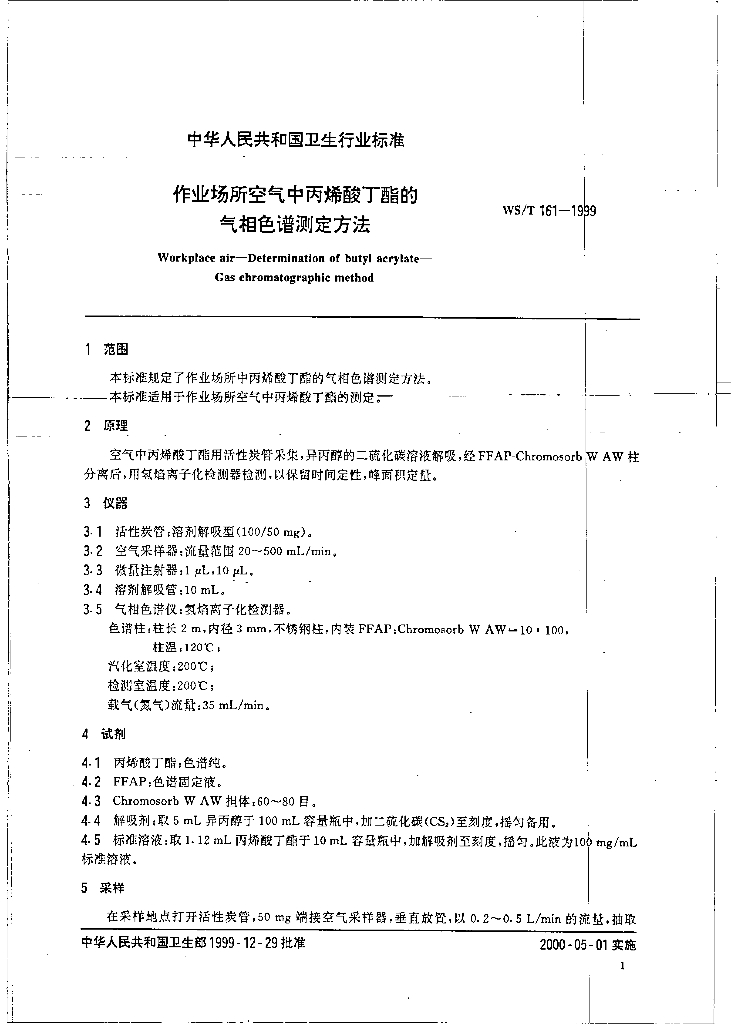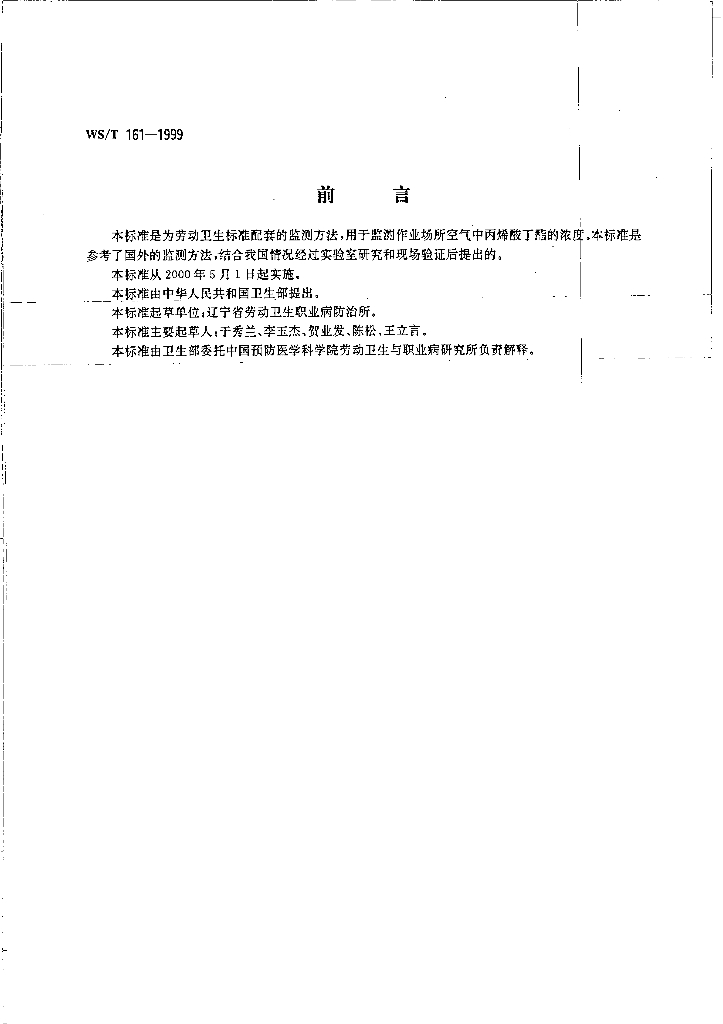 WS/T 161-1999 作业场所空气中丙烯酸丁酯的气相色谱测定方法