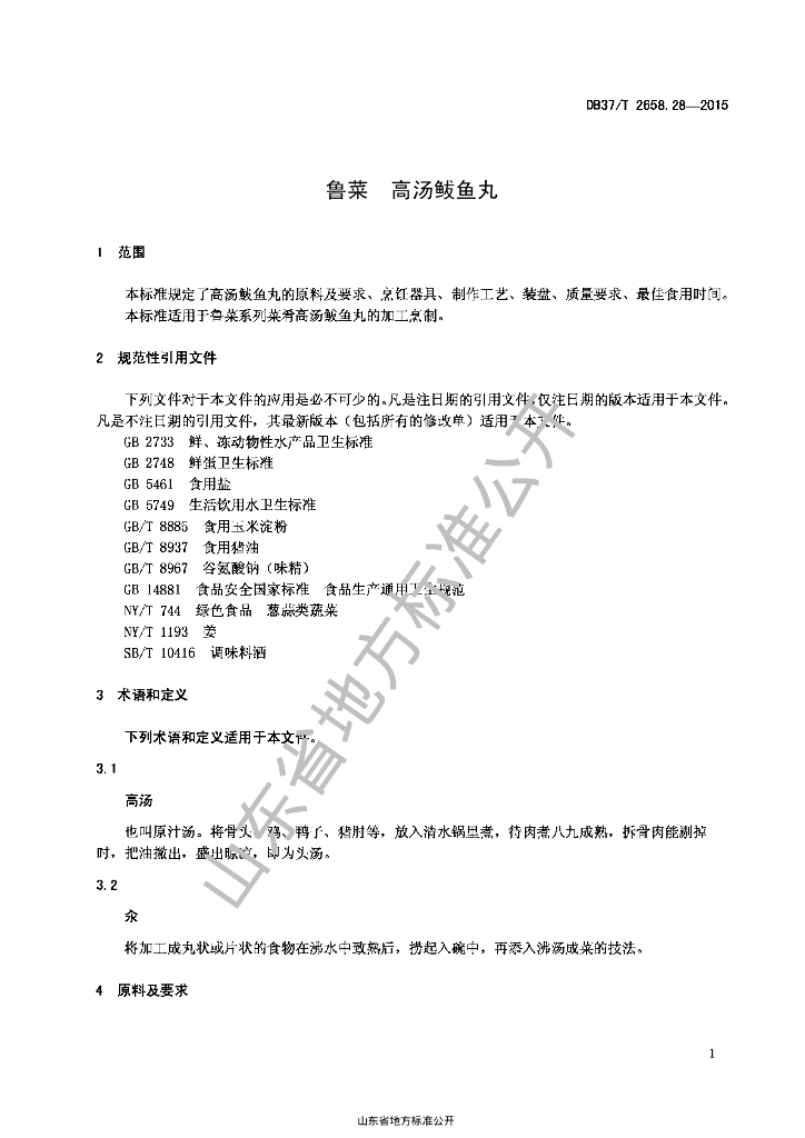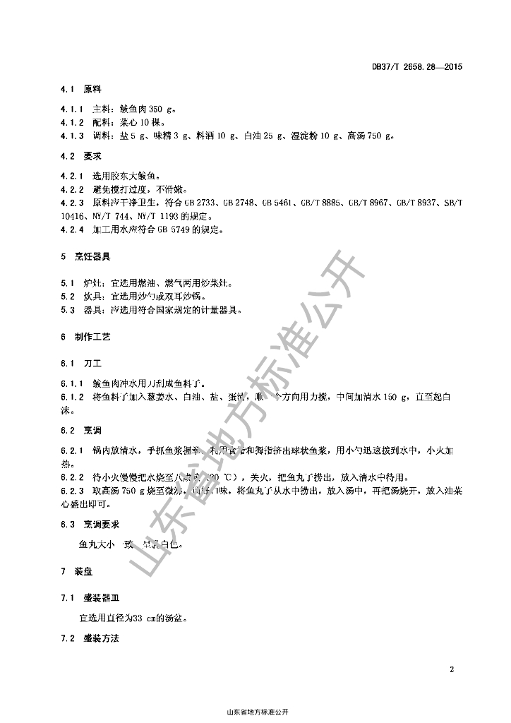 DB37/T 2658.28-2015 鲁菜 高汤鲅鱼丸
