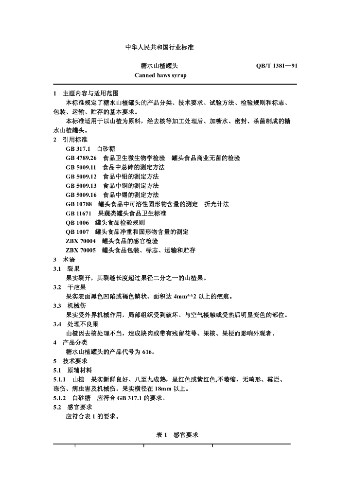 QB/T 1381-1991 糖水山楂罐头