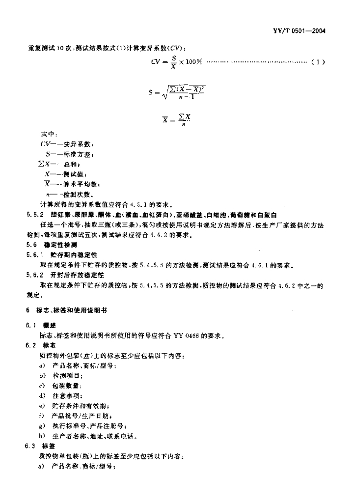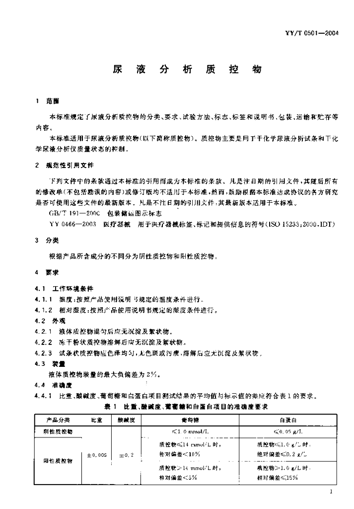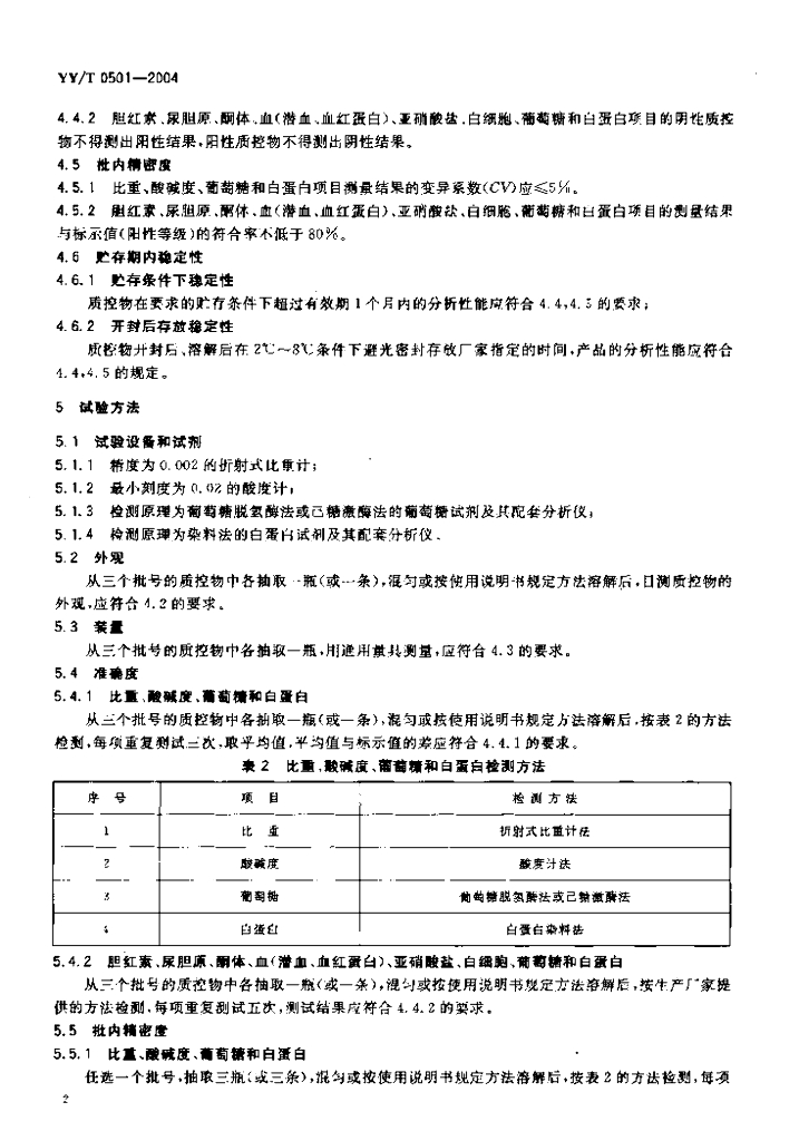 YY/T 0501-2004 尿液分析质控物