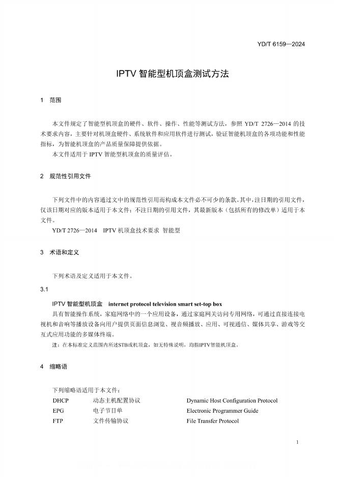 YD/T 6159-2024 IPTV智能型机顶盒测试方法