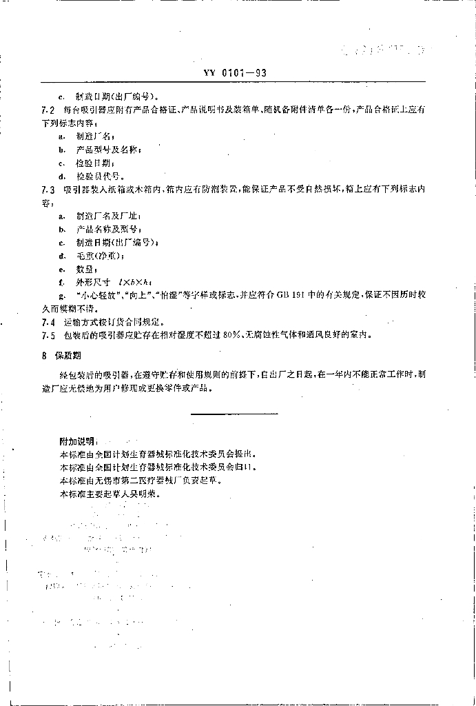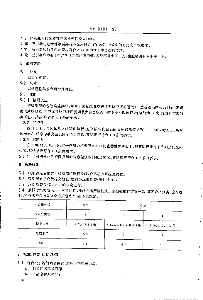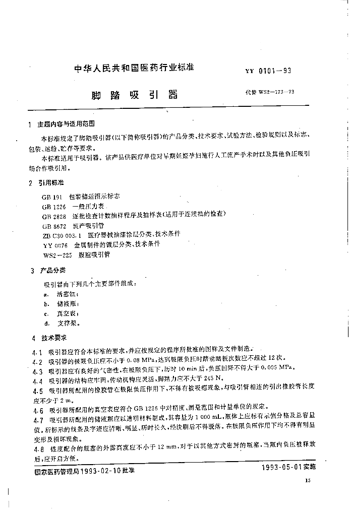 YY 0101-1993 脚踏吸引器