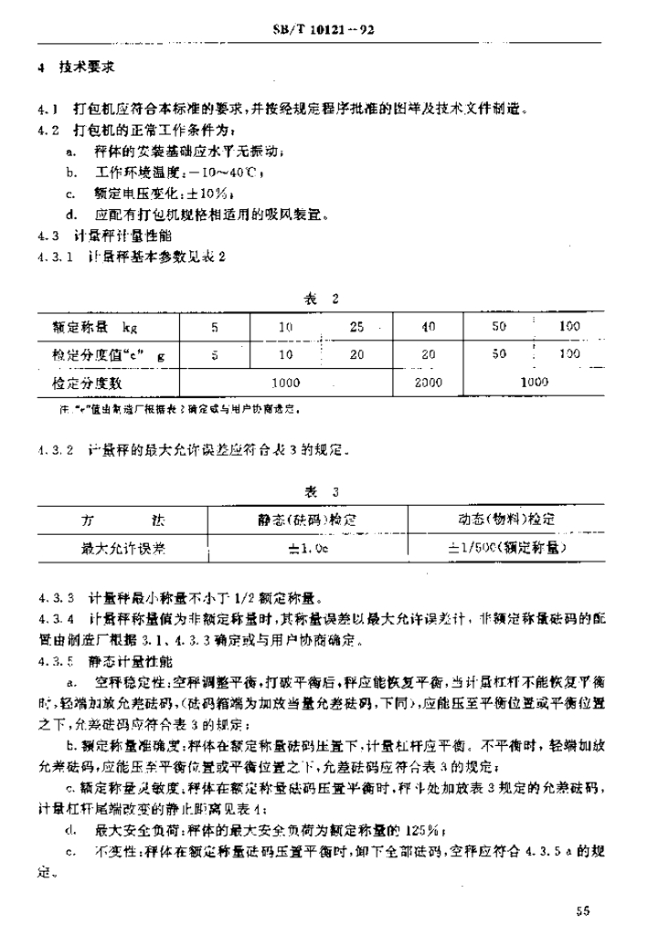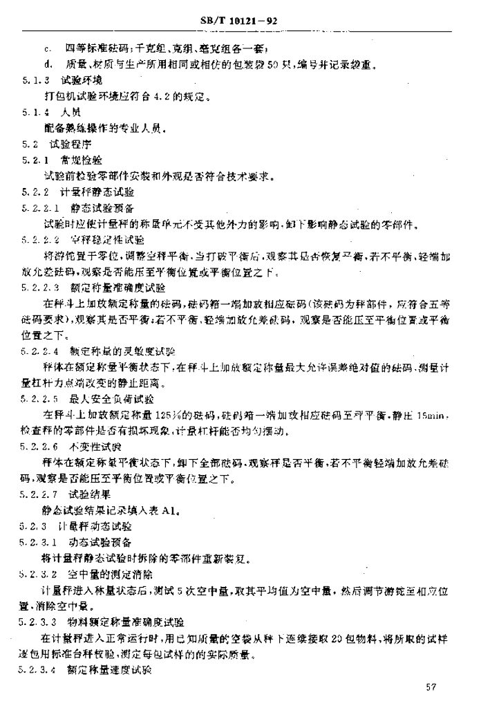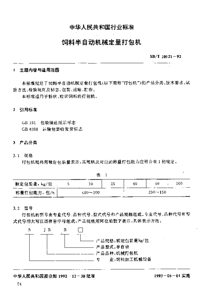 SB/T 10121-1992 饲料半自动机械定量打包机(LS/T 3608-1992)