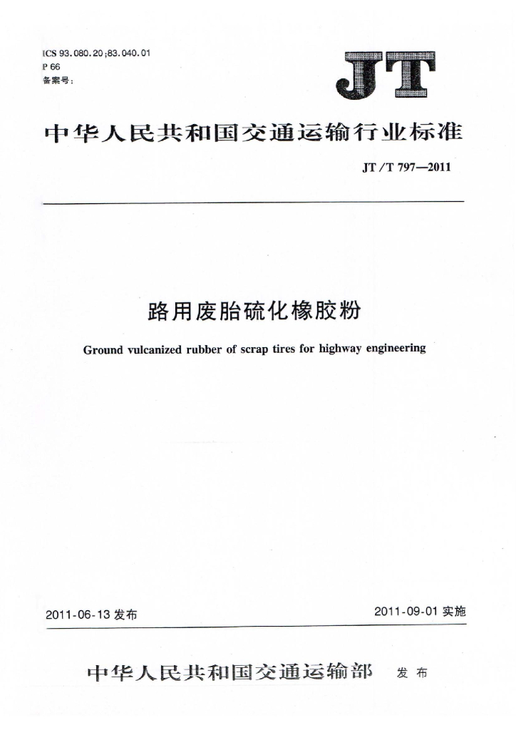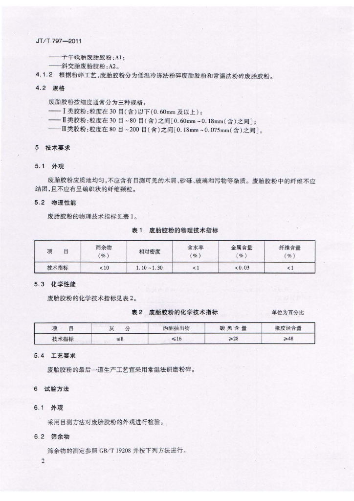 JT/T 797-2011 路用废胎硫化橡胶粉