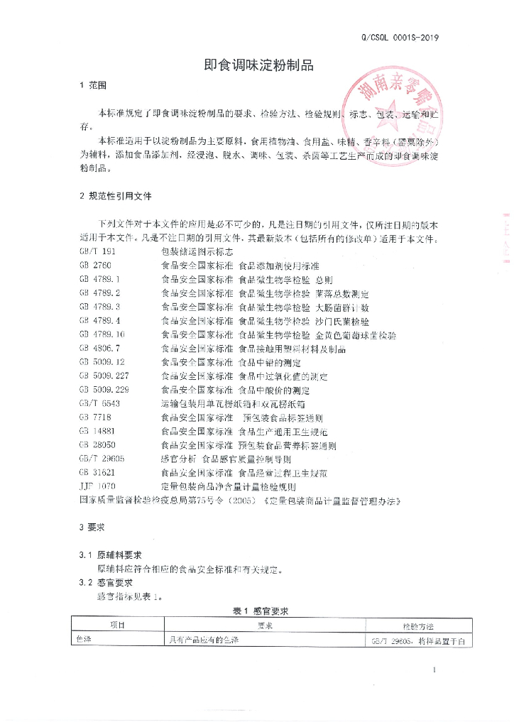 Q/CSQL 0001S-2019 即食调味淀粉制品