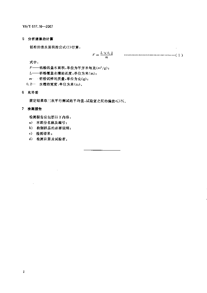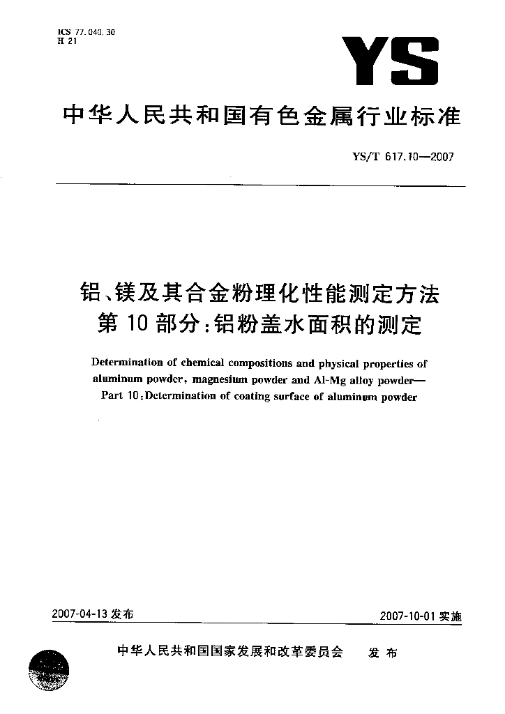 YS/T 617.10-2007 铝、镁及其合金粉理化性能测定方法 第10部分:铝粉盖水面积的测定