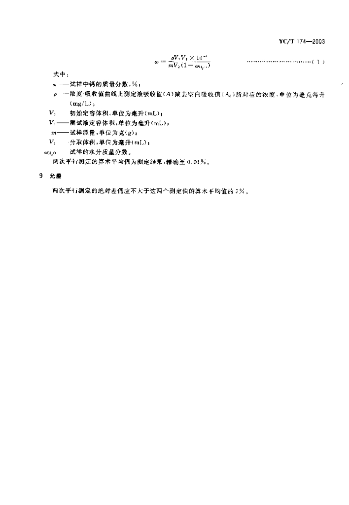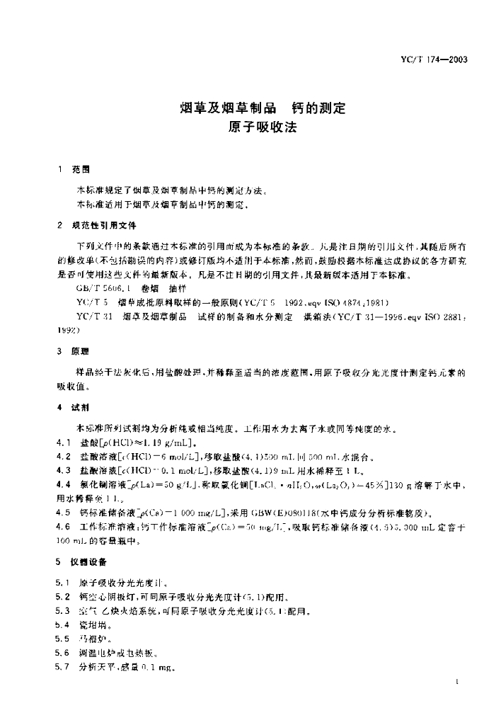 YC/T 174-2003 烟草及烟草制品 钙的测定 原子吸收法
