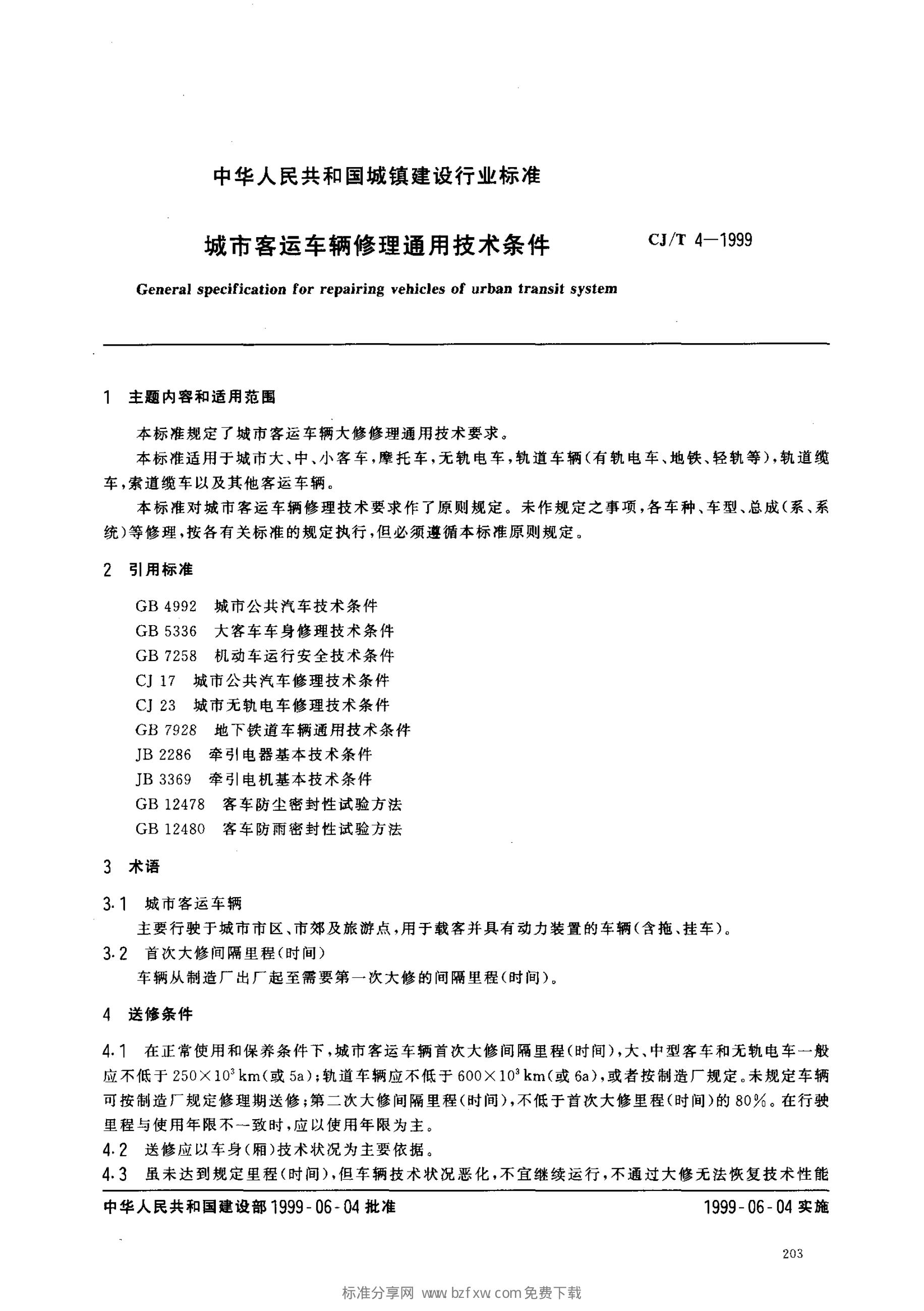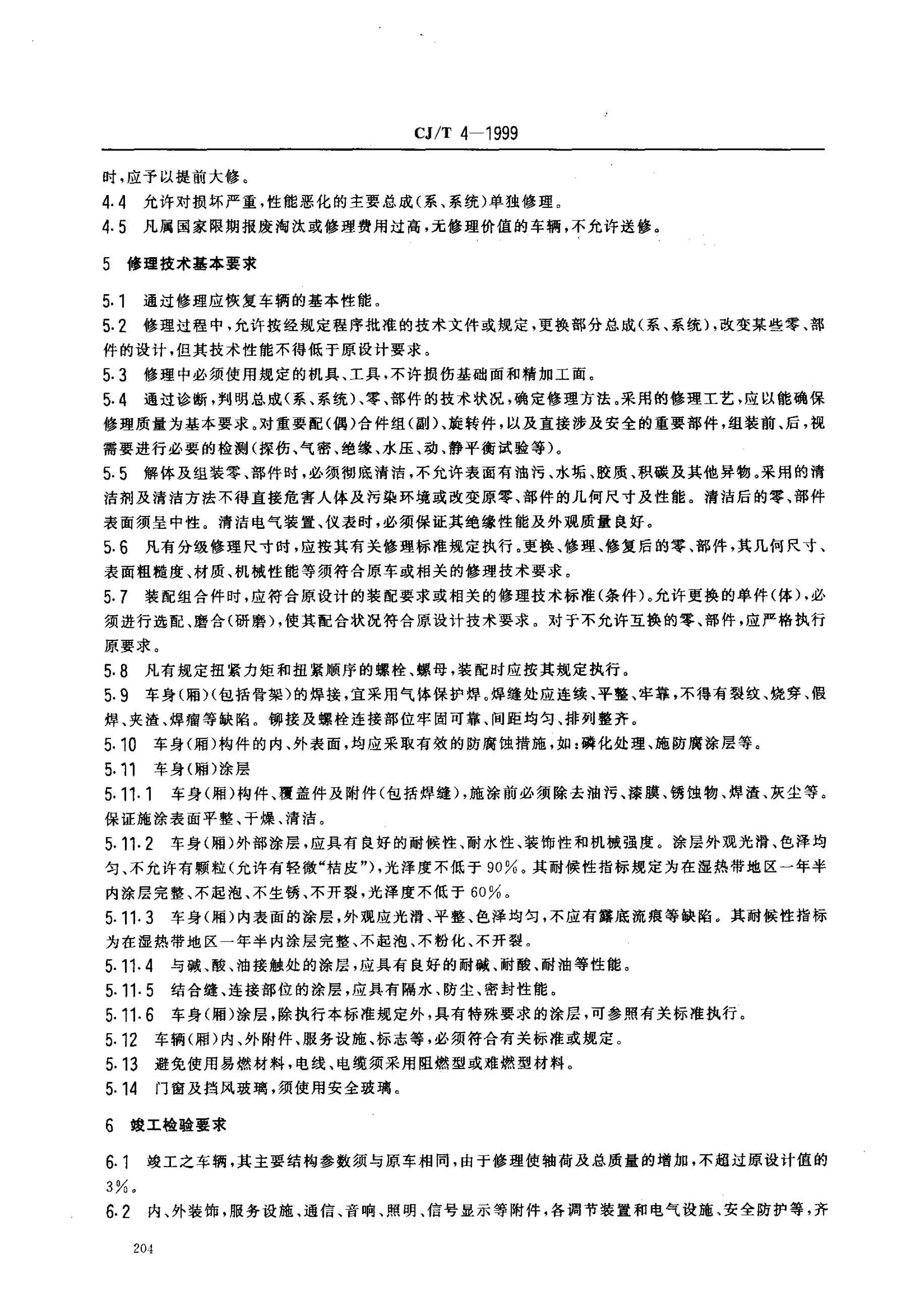 CJ/T 4-1999 城市客运车辆修理通用技术条件