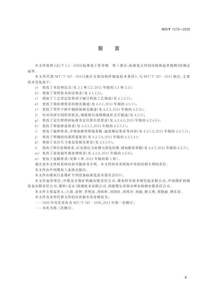 MT/T 1273-2025 液压支架结构件制造技术条件