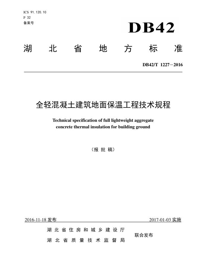 DB42/T 1227-2016 全轻混凝土建筑地面保温工程技术规程