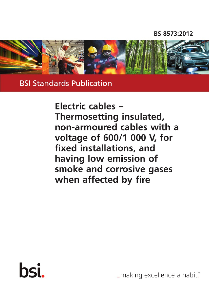 BS 8573:2012 固定敷设用、受火焰影响时烟雾和腐蚀性气体排放量低的600 1000V热固性绝缘无铠装电缆