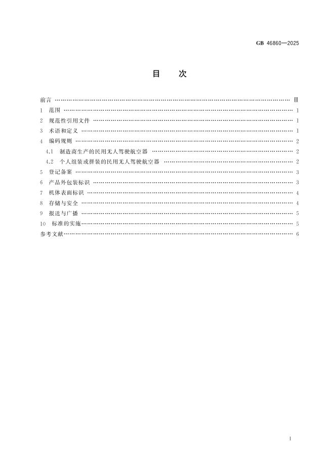 GB 46860-2025 民用无人驾驶航空器唯一产品识别码