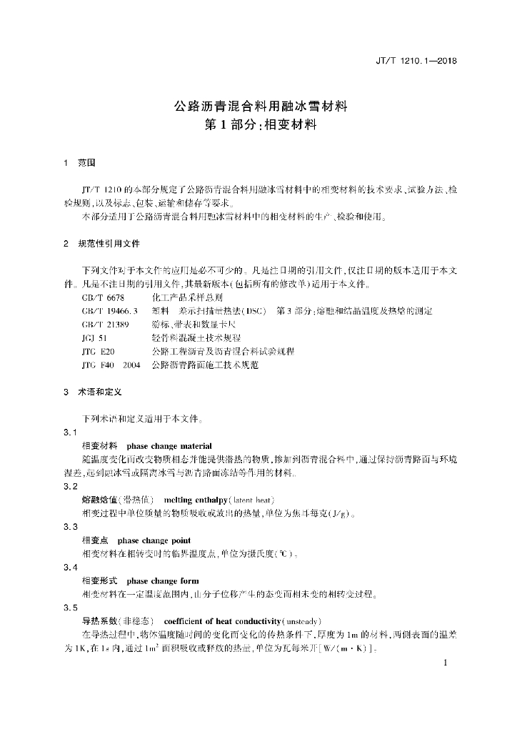 JT/T 1210.1-2018 公路沥青混合料用融冰雪材料 第1部分:相变材料