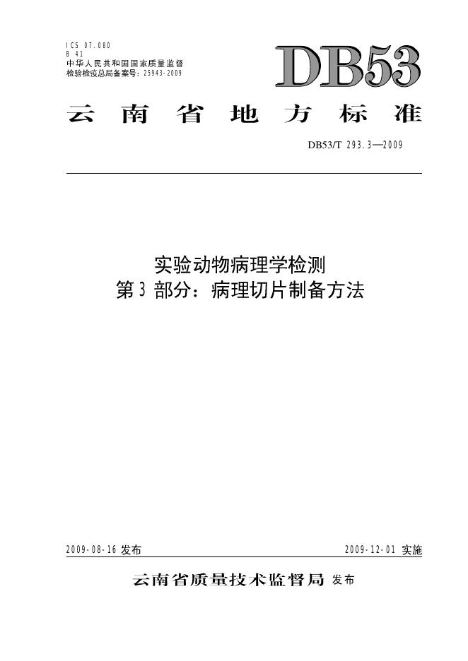 DB53/T 293.3-2009 实验动物病理学检测 第3部分:病理切片制备方法