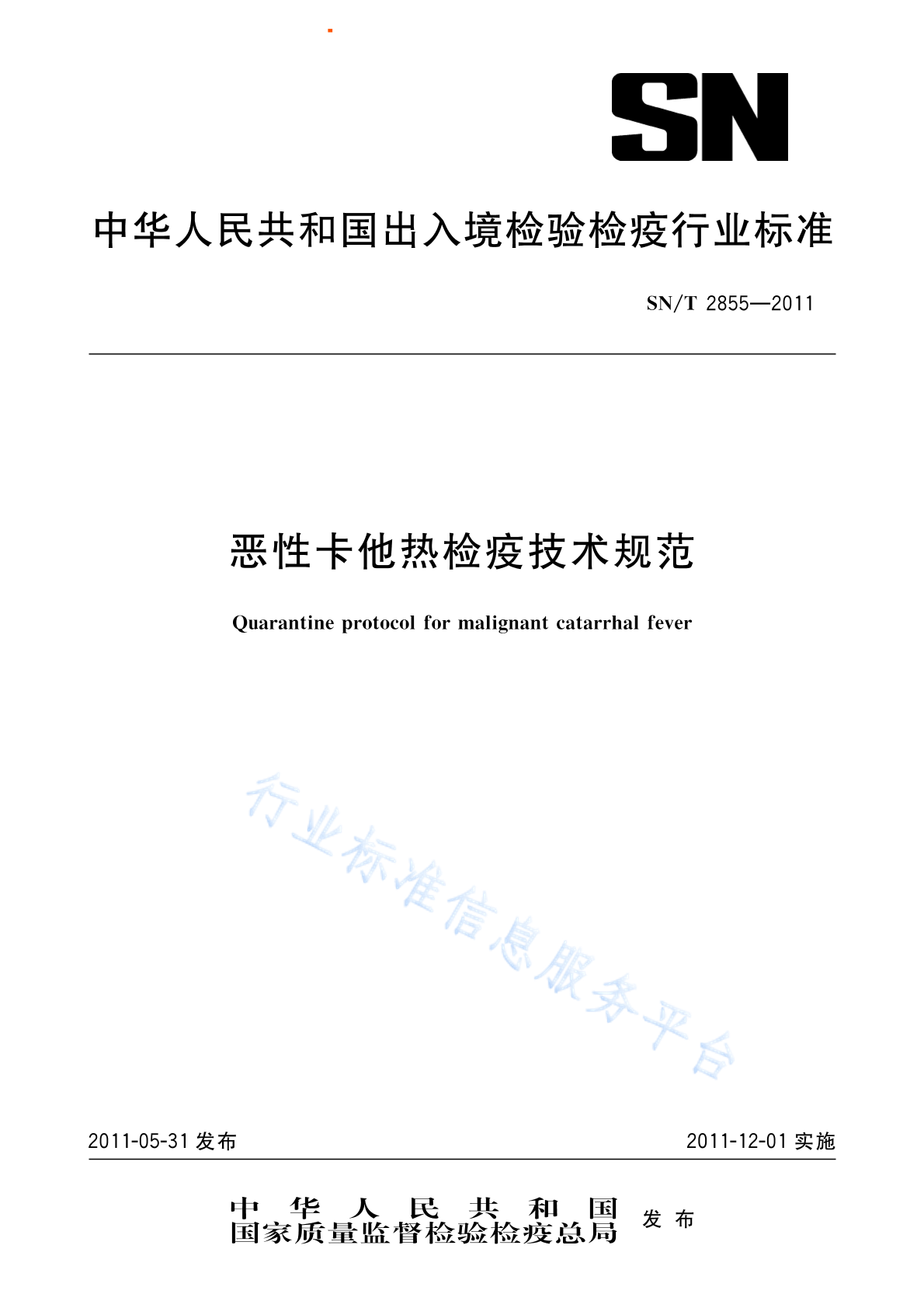 SN/T 2855-2011 恶性卡他热检疫技术规范
