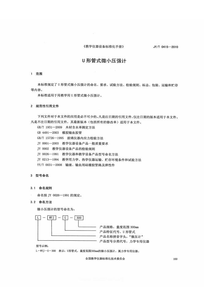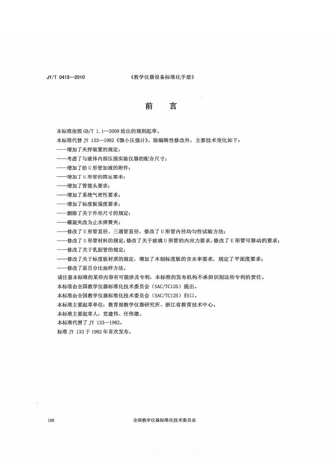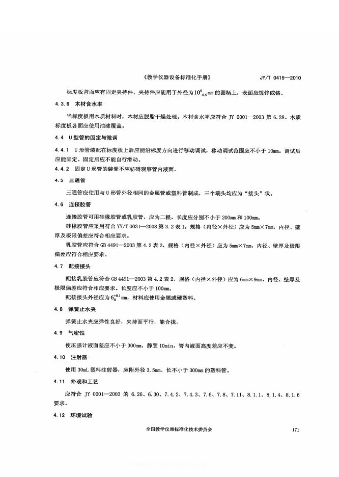 JY/T 0415-2010 U形管式微小压强计
