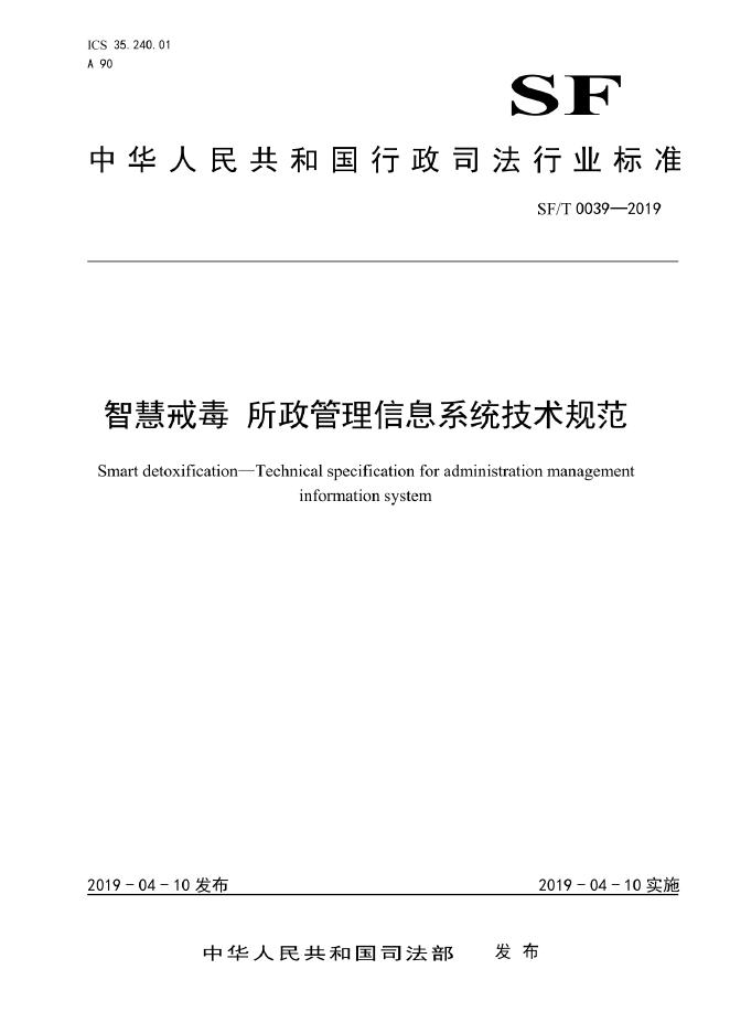 SF/T 0039-2019 智慧戒毒 所政管理信息系统技术规范