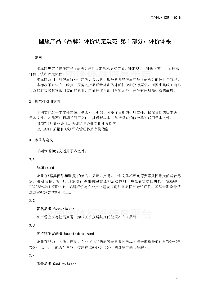 T/HNJK 009-2018 健康产品(品牌)评价认定规范——第1部分:评价体系