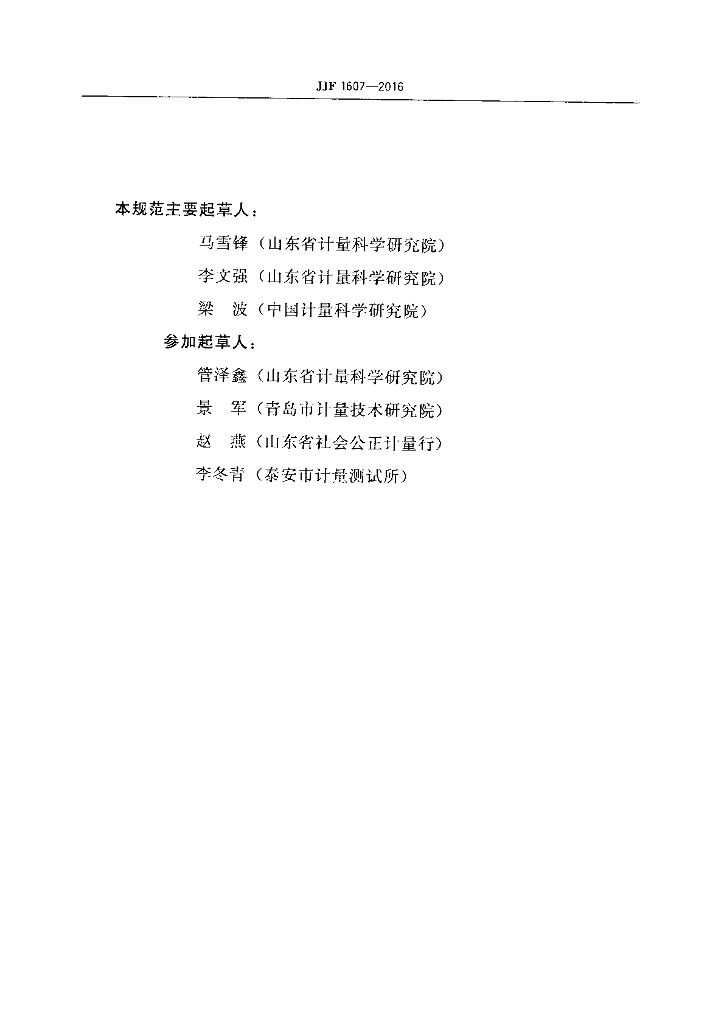 马雪锋(山东省计量科学研究院)、李文强(山东省计量科学研究院)、梁波(中国计量科学研究院)、管泽鑫(山东省计量科学研究院)、景军(青岛市计量技术研究院)、赵燕(山东省社会公正计量行)、李冬青(泰安市计量测试所)