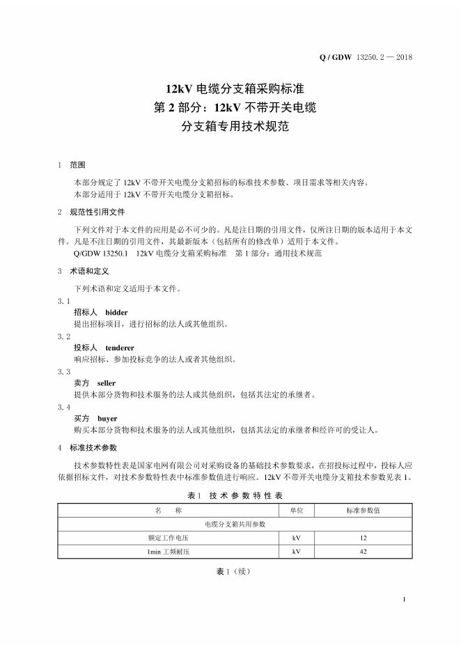 Q/GDW 13250.2-2018 12kV电缆分支箱采购标准 第2部分:12kV不带开关电缆-分支箱专用技术规范
