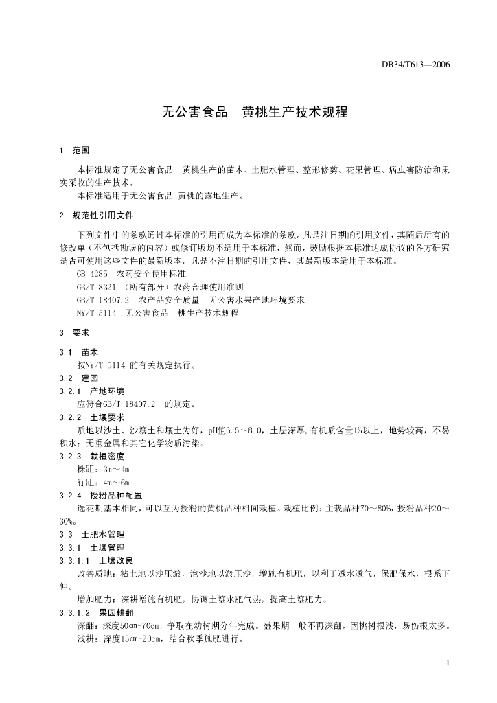 DB34/T 613-2006 无公害食品 黄桃生产技术规程