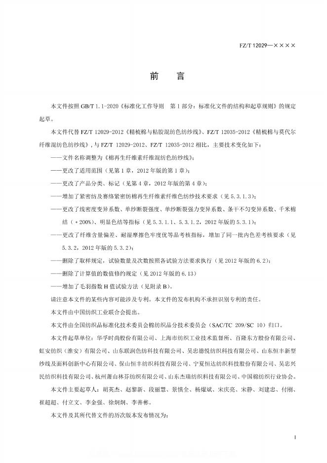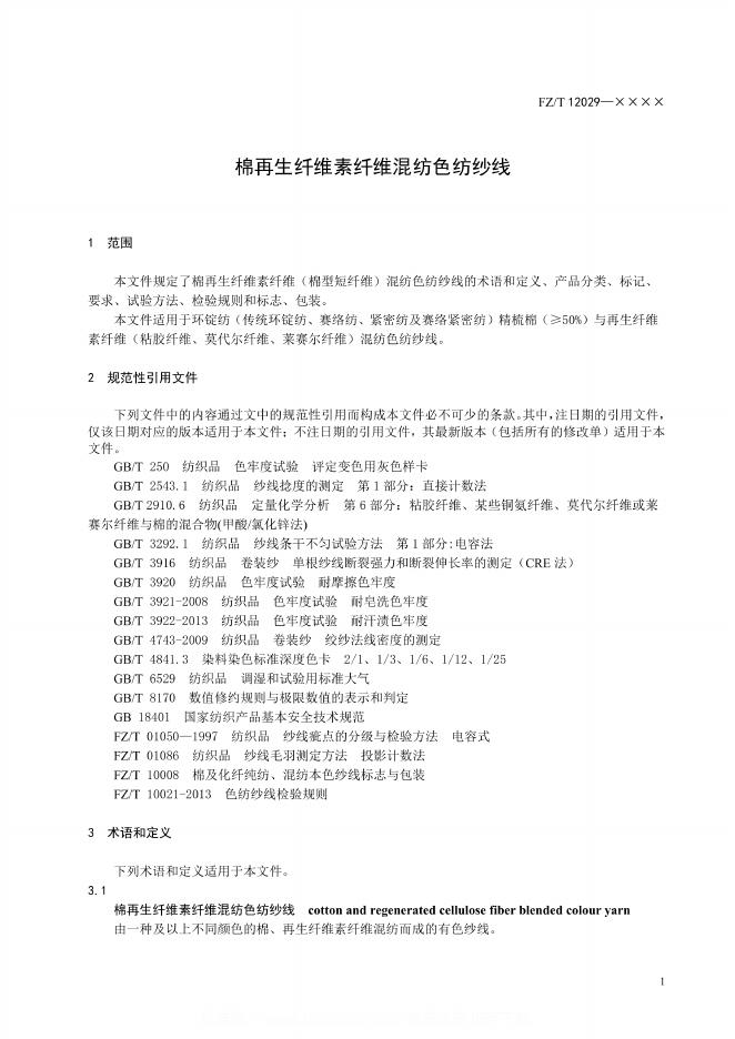 FZ/T 12029-2023 棉再生纤维素纤维混纺色纺纱线(报批稿)