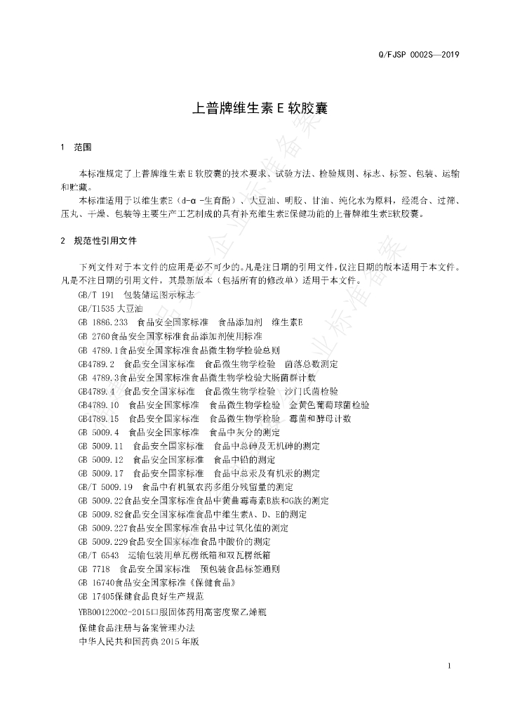 Q/FJSP 0002S-2019 上普牌维生素E软胶囊