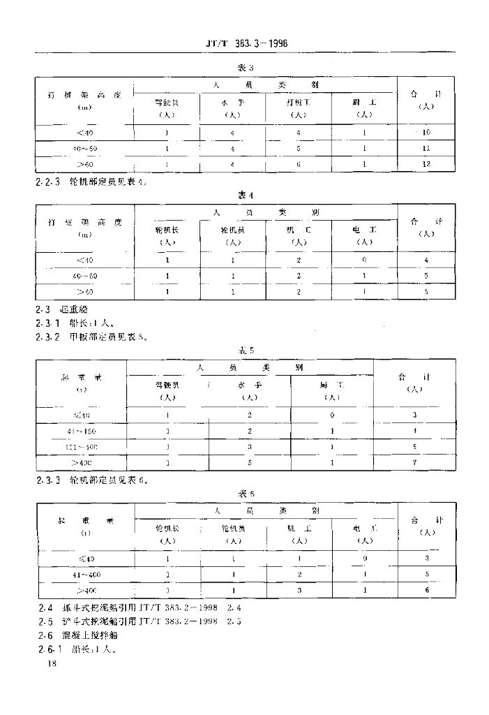 JT/T 383.3-1998 工程船舶劳动定员航务工程船舶