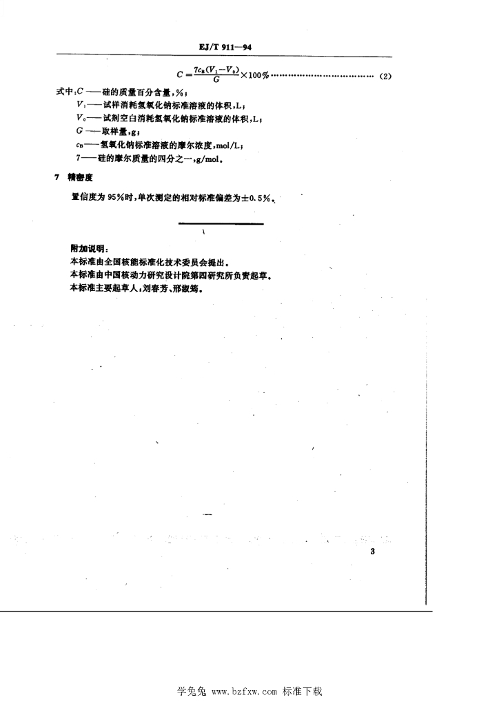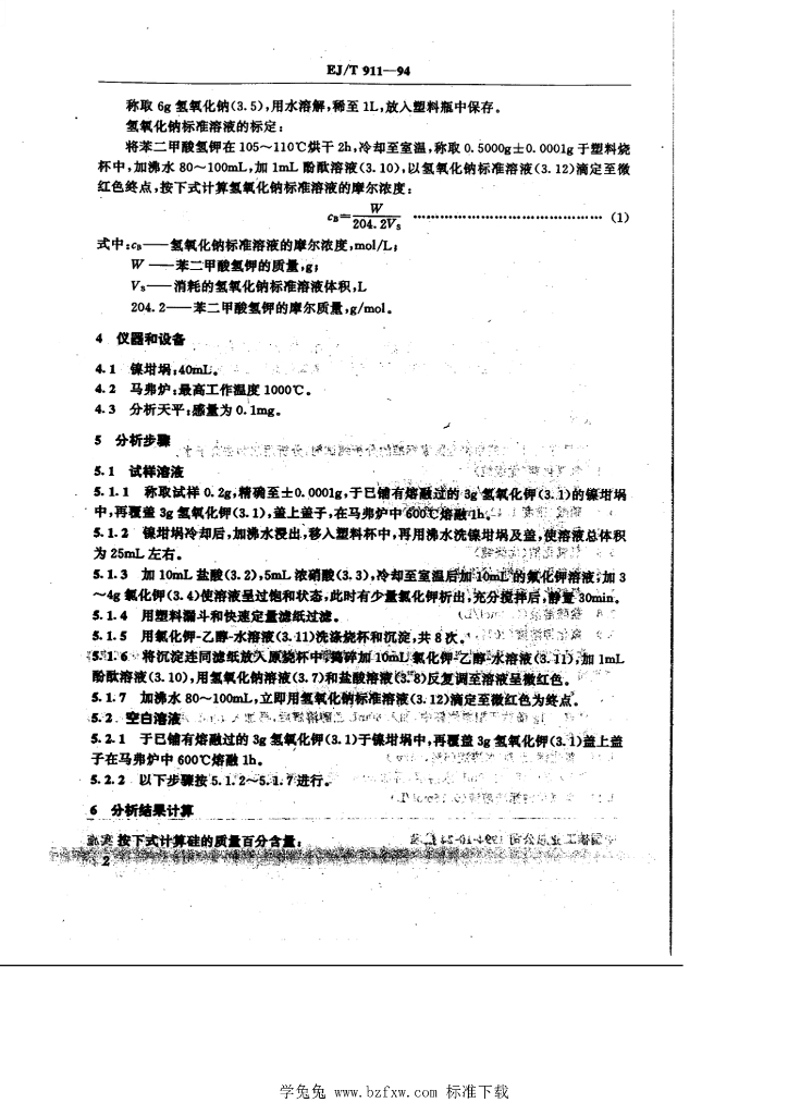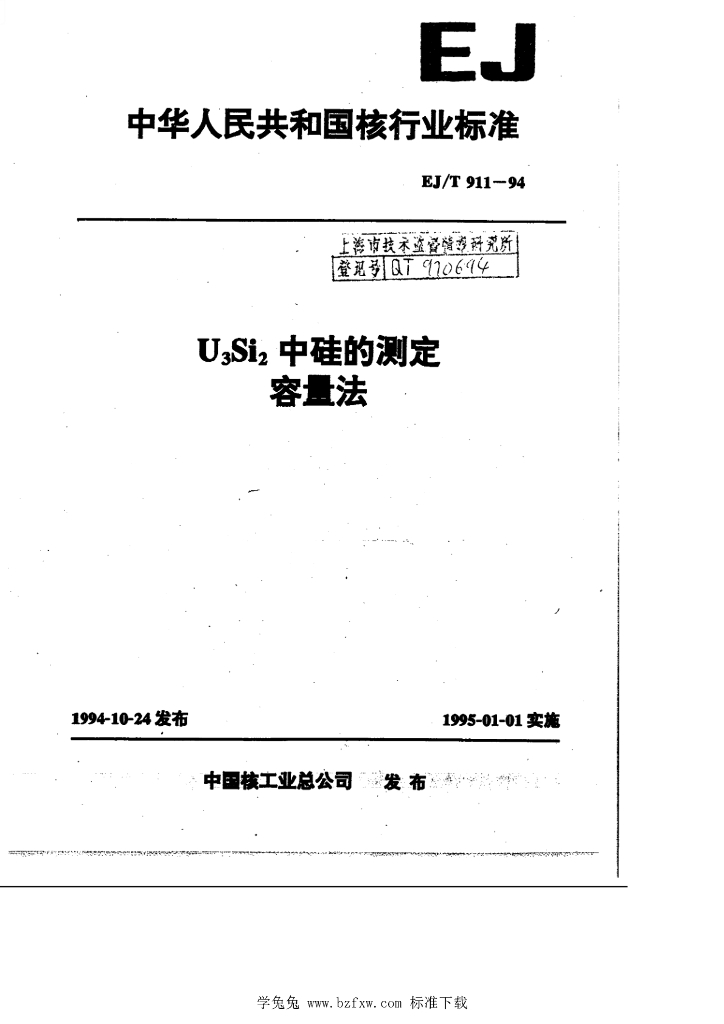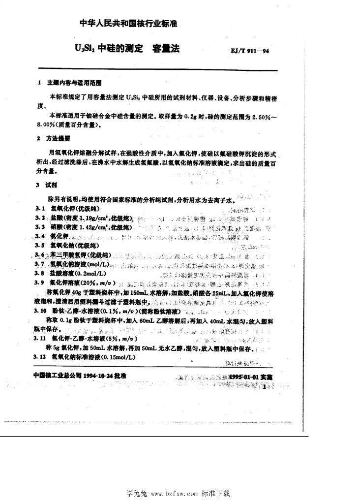 EJ/T 911-1994 铀三硅二中硅的测定 容量法