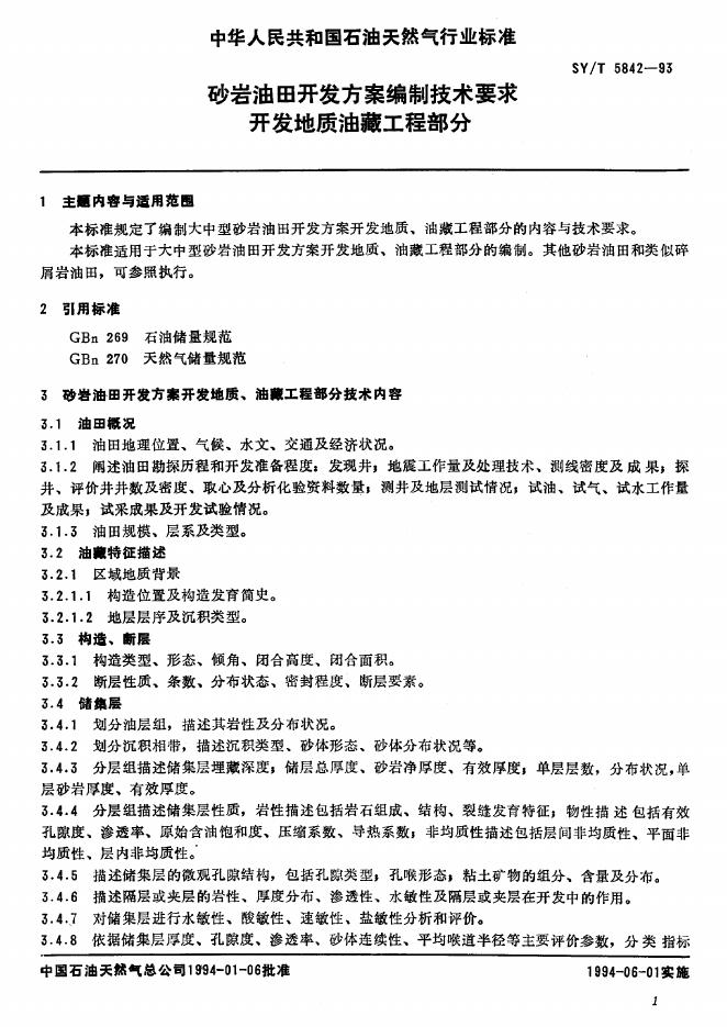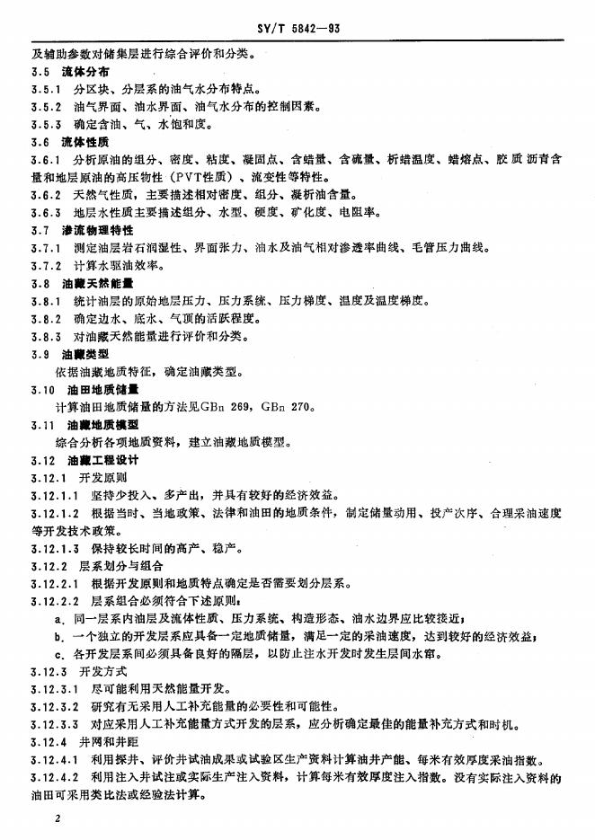 SY/T 5842-1993 砂岩油田开发方案编制技术要求 开发地质油藏工程部分