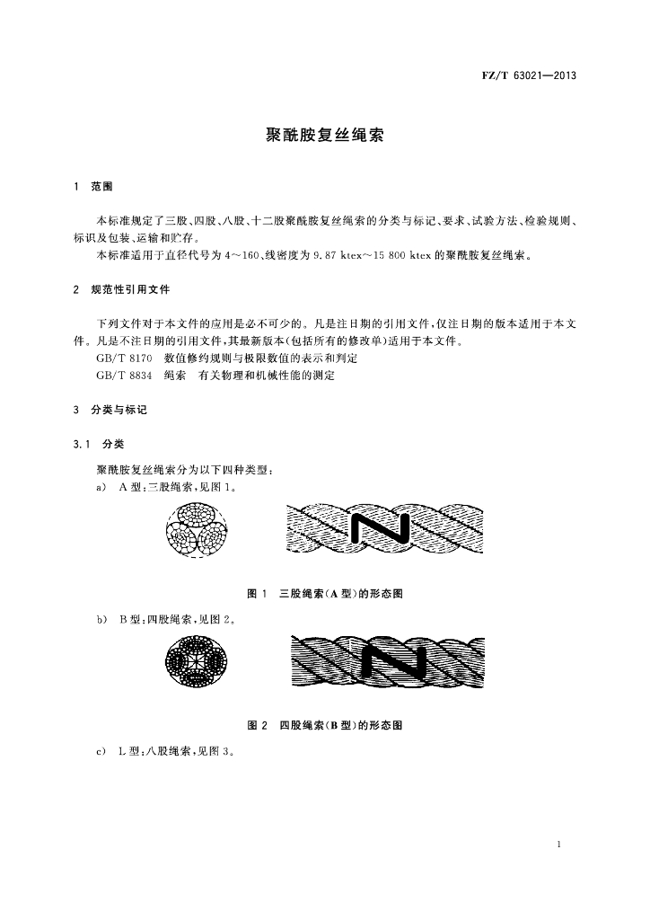 FZ/T 63021-2013 聚酰胺复丝绳索