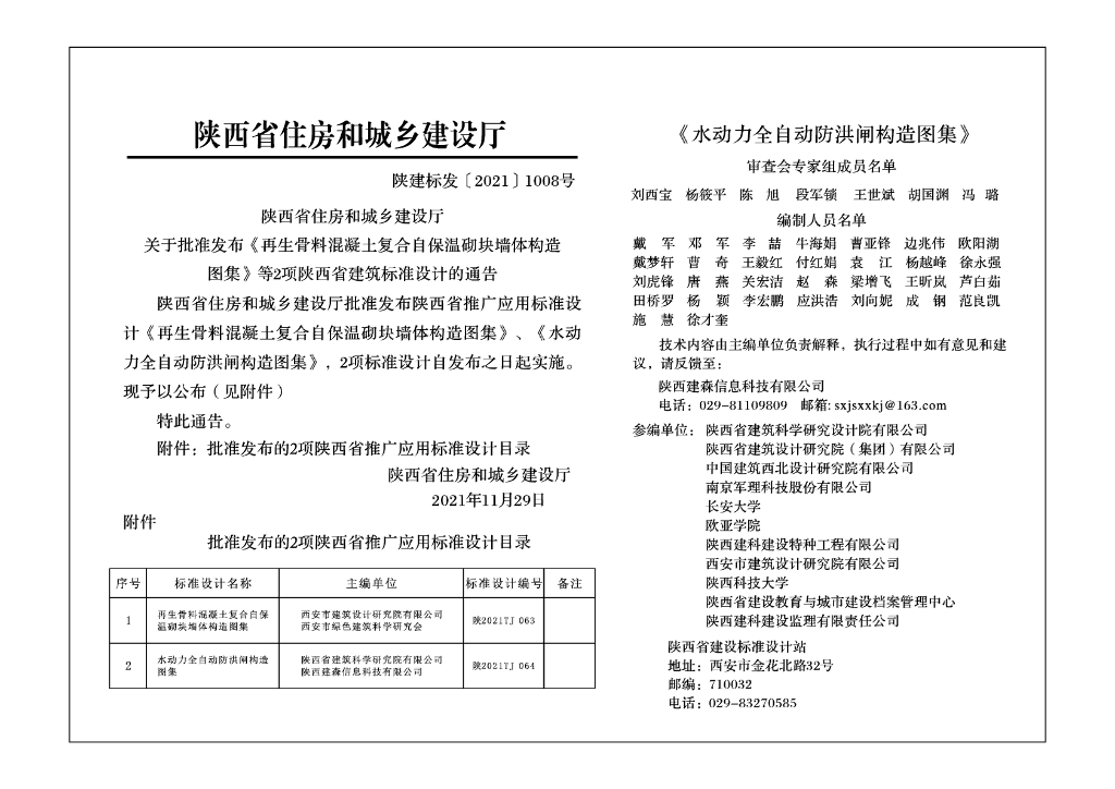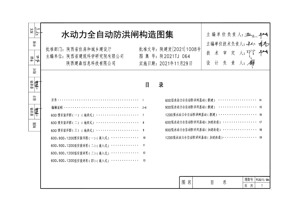 陕2021TJ064 水动力全自动防洪闸构造图集