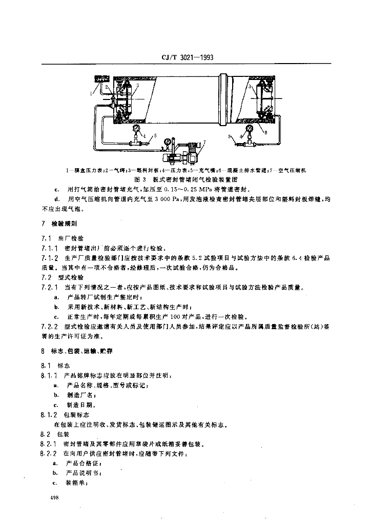 CJ/T 3021-1993 排水管道闭气检验用 板式密封管堵